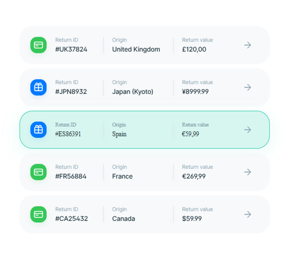 ✅ Wide range of returning options for your customers, such as paid returns, return to store, and return to gift card.
