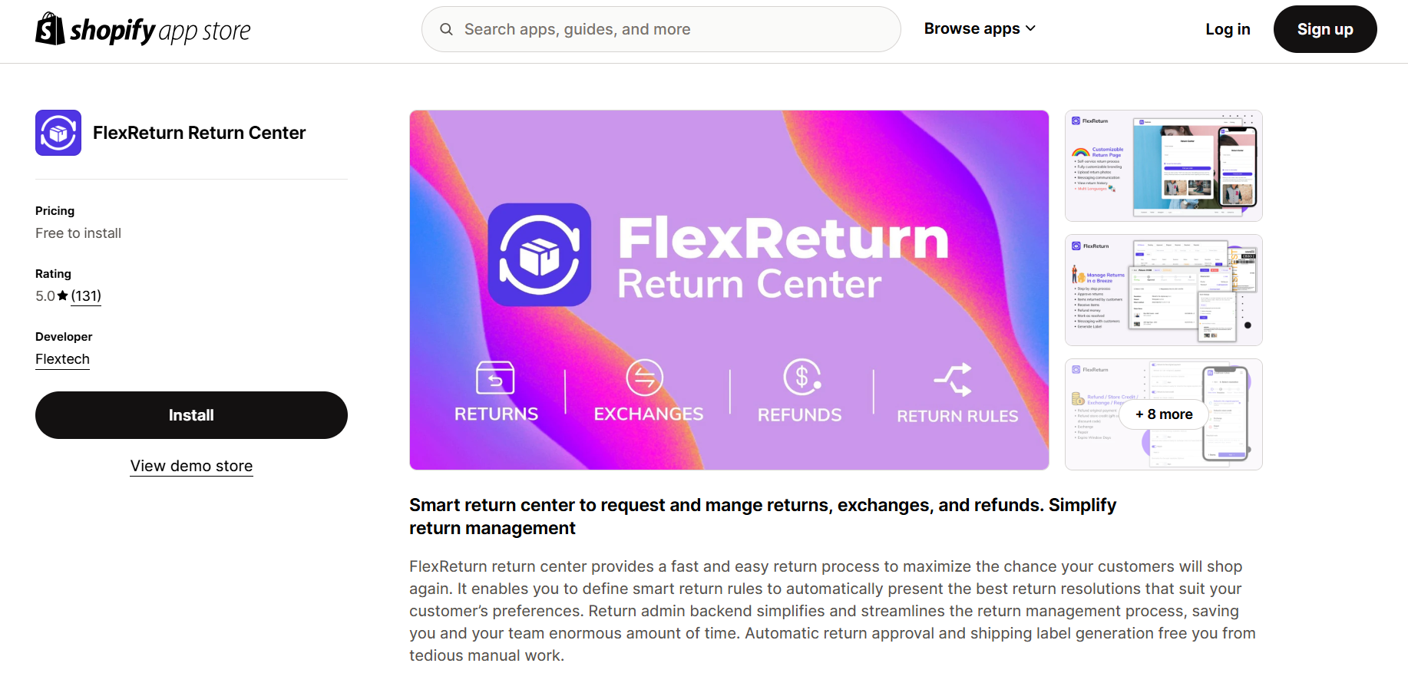 FlexReturn’s Shopify pricing offers a free-to-install plan that charges you $0.70 for 5 returns per month and gives you access to the tool’s return rules and email notifications.
