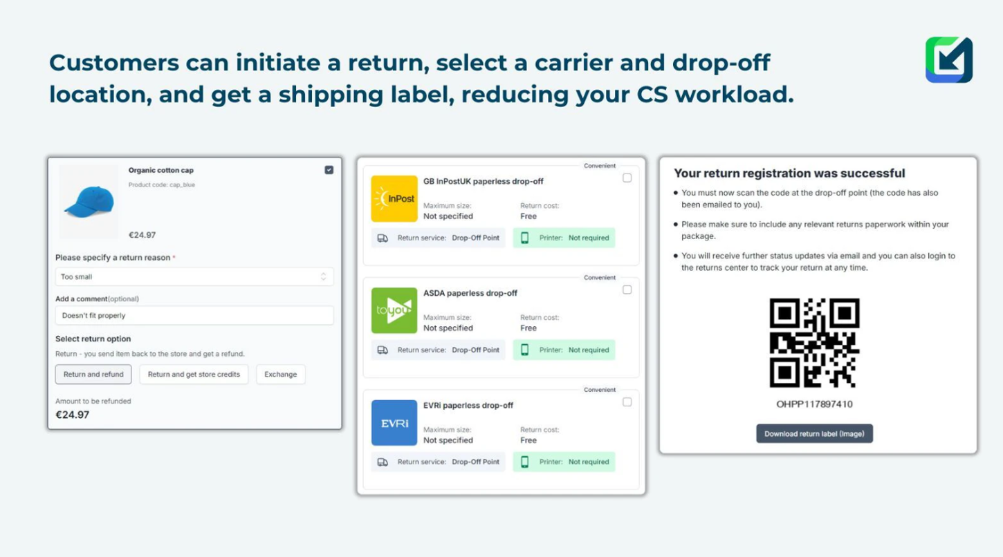 ✅ Auto-generated Evri, Collect+ and USPS return labels.