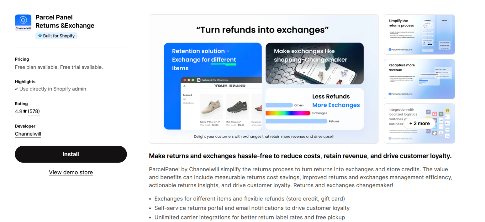 Built specifically for Shopify retailers, Parcel Panel offers a returns management platform that lets you set up hassle-free returns and exchanges for shoppers.