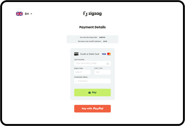 Customers are charged upfront via the returns portal at the moment they order their return, (via credit card, debit card up, via PayPal, via Google Pay, or Apple Pay). Our clients tend to prefer this method because it creates the minimum customer service queries.
