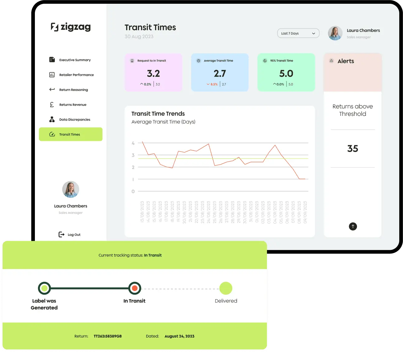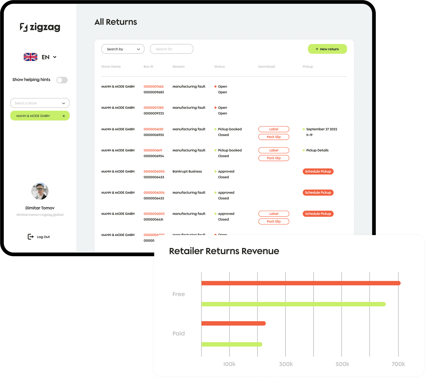 With ZigZag's Returns Reporting Hub, you can even identify the impact of stuck-at-border issues. Empower buyers and merchandisers with product analysis. Provide early notifications of specific product issues, such as sizing or manufacturing faults, to stay ahead of the curve and ensure your product offerings meet customer expectations.