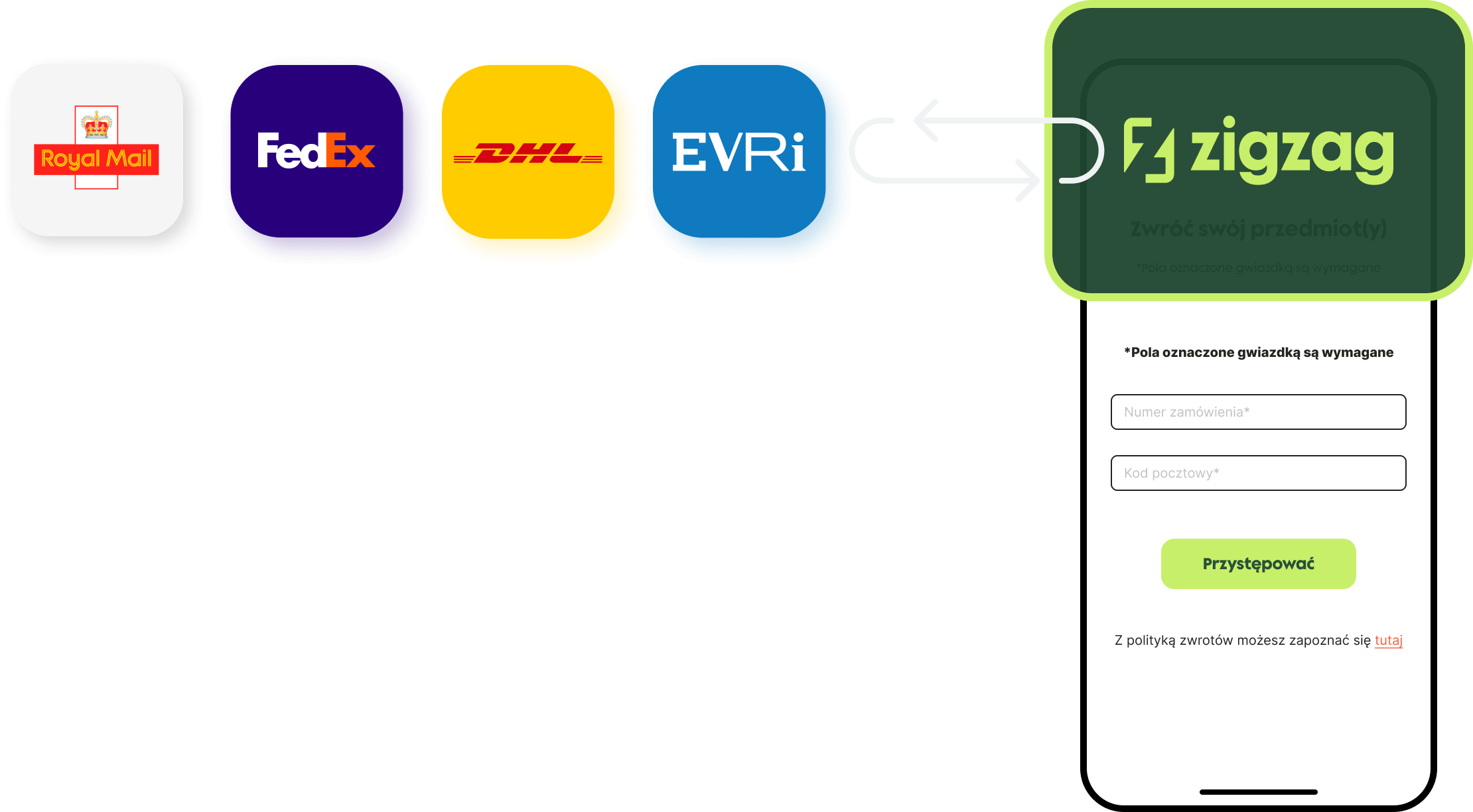 Wiodący przewoźnicy paczek, operatorzy pocztowi, firmy 3PL, firmy technologiczne i rynki na całym świecie zdecydowali się na rozwiązanie do zarządzania zwrotami firmy ZigZag white label, w tym Royal Mail, FedEx, DHL, GFS, Evri i inne.